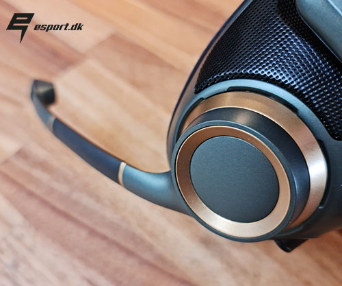 På den anden side af H6PRO finder vi mikrofonen, som ser lidt anderledes ud end vi er vant til fra headsets. Designet er som det ses holdt i en fed farve kombination hele vejen rundt, og blandingen af guld ind i de andre farver, giver lige en følelse af lidt mere klasse.