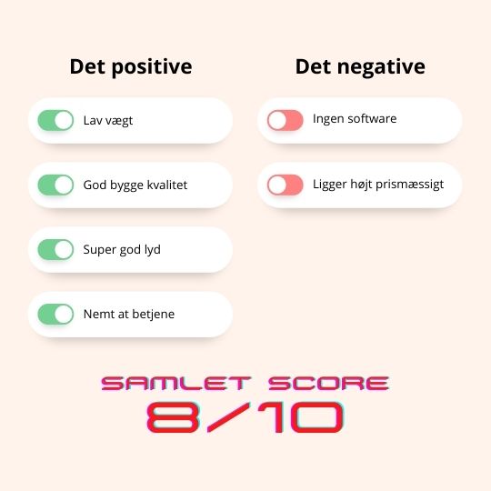 Til diverse andre spil, der er lyden også rigtigt god, og ganske fyldig, hvilket gør at dybden på ens spil bare bliver større og bedre. Mikrofonen er super præcis om end en smule lav i default settings, men det kan der ændres ved enten i Windows eller i det program du bruger.