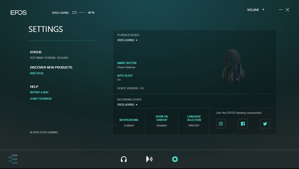 EPOS gaming suite er ganske nem at gå til, og man har en ganske fint overblik så snart man kommer ind i softwaren.