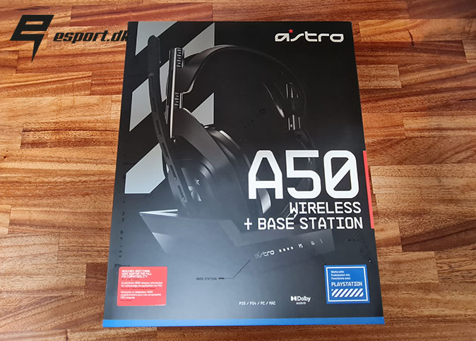 Her ser vi Astro A50 Headsettet inklusiv base stationen som det tager sig ud når det bare står bordet. Den model som vi har modtaget er i sort og grå, men du kan også købe headsettet i sort og guld.