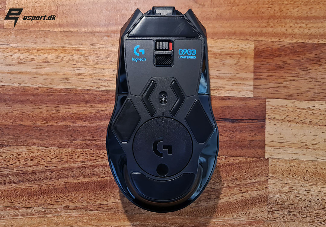 Set fra oven kommer Logitech G903 design virkelig til sin magt, med sin matsorte næsten billeagtige form med de mange subtile streger der løber gennem musen.