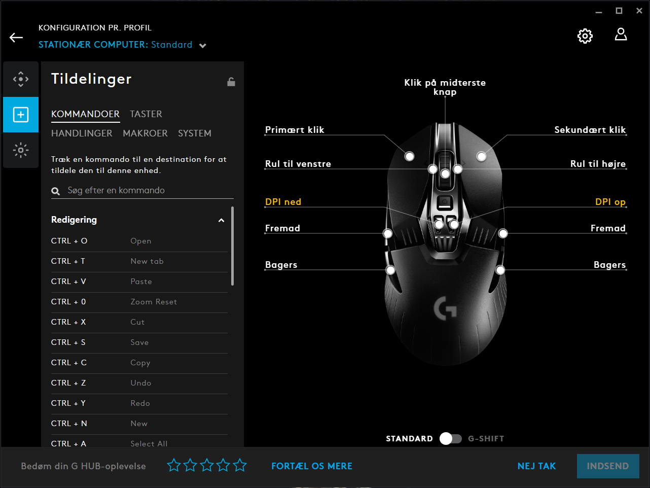 Når man bevæger sig videre til fanen “Tildelinger” kan man her indstille knapperne efter behov, lave makroer og genveje til diverse programmer.