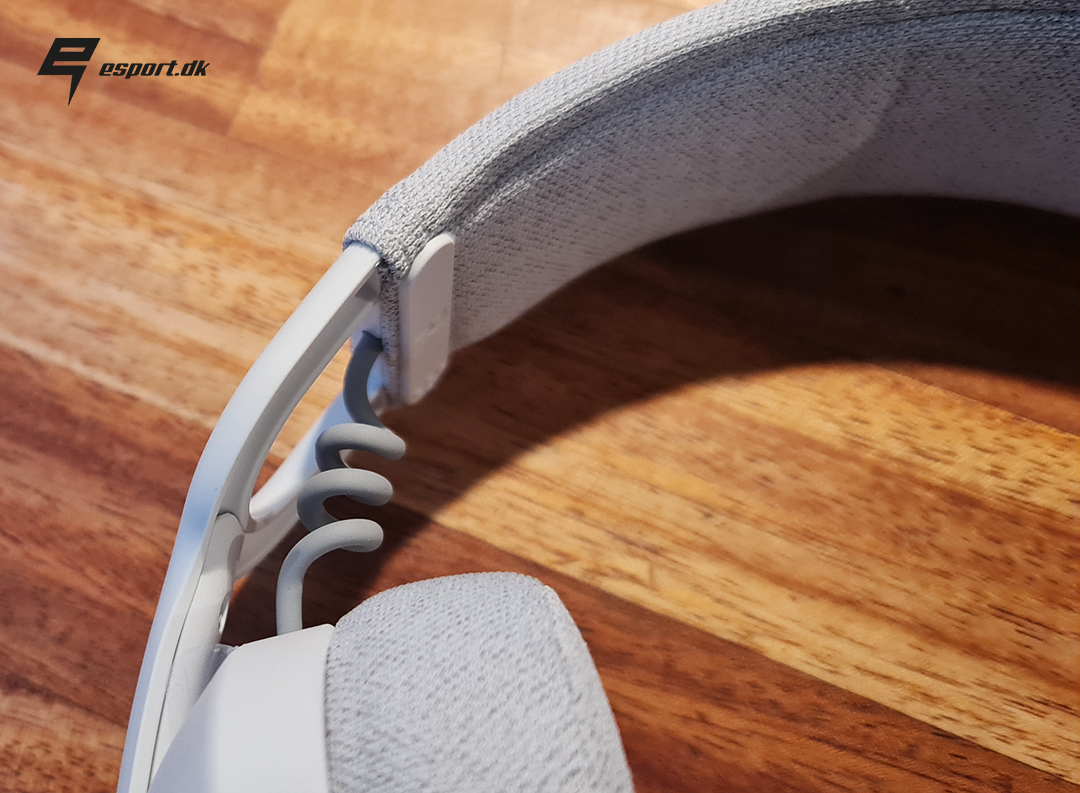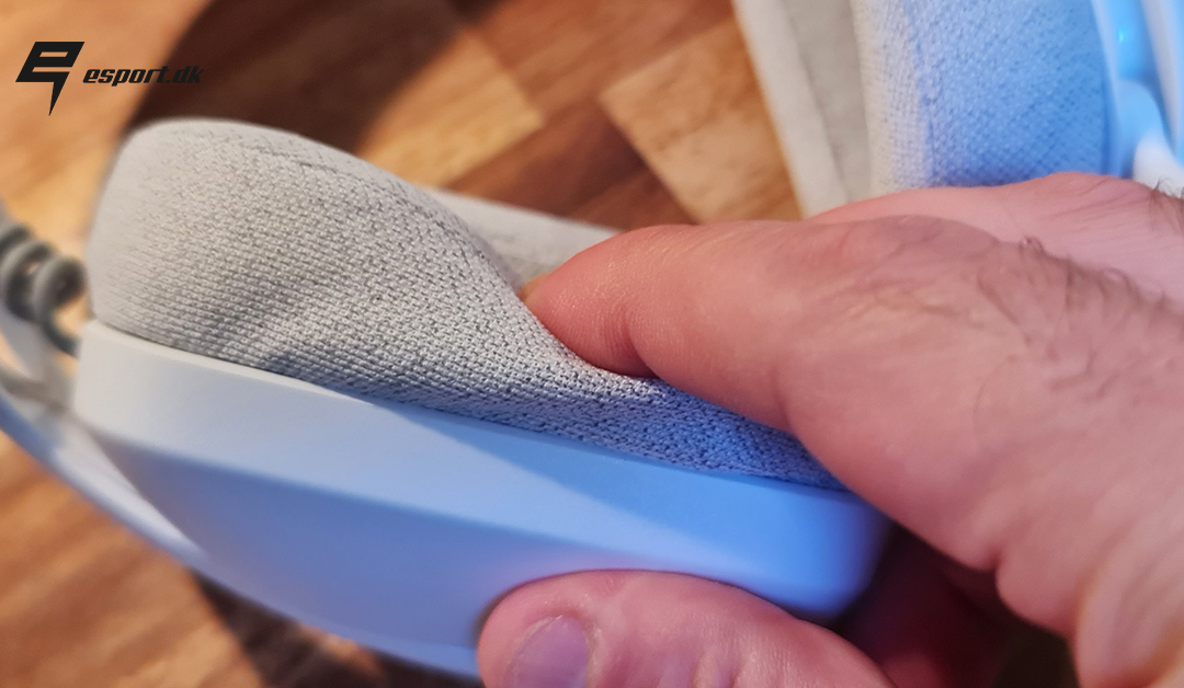 Selve øre kopperne er lavet af en blanding af “sofa stof” og memory skum, og som man kan se her på billedet, så er der rigeligt med memoryskum, og dermed føles kopperne ganske bløde. Stoffet der er brugt, et “sofa stof” som Logitech selv beskriver det, er utroligt behageligt at have på, og specielt ved længere tids brug sørger det for en god ventilering af ørerne.